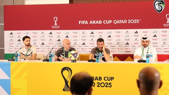 عُقد اليوم المؤتمر الصحفي الخاص بالمباراة المرتقبة بين منتخبنا الوطني ونظيره القطري ضمن الجولة الثانية من دور المجموعات لبطولة كأس العرب، وذلك بعد انتهاء المؤتمر التنسيقي الذي تقرر فيه أن يرتدي منتخبنا الوطني اللباس الأخضر الكامل، فيما سيظهر المنتخب القطري باللباس الأبيض في المباراة المقرر إقامتها عند الساعة الثامنة مساءً يوم غد الخميس على إستاد خليفة الدولي.